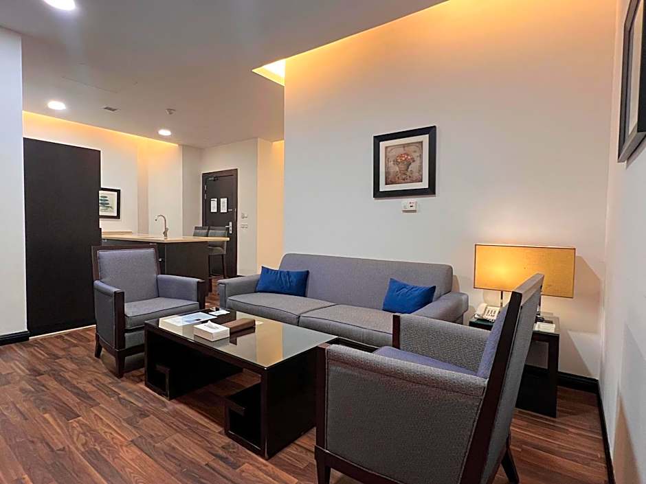 Decorated in warm tones, this air-conditioned suite offers free Wi-Fi and a living room with dining area. Facilities include a flat-screen TV, a wardrobe and a telephone. The bathroom is fitted with a shower, bathrobe and a hairdryer.